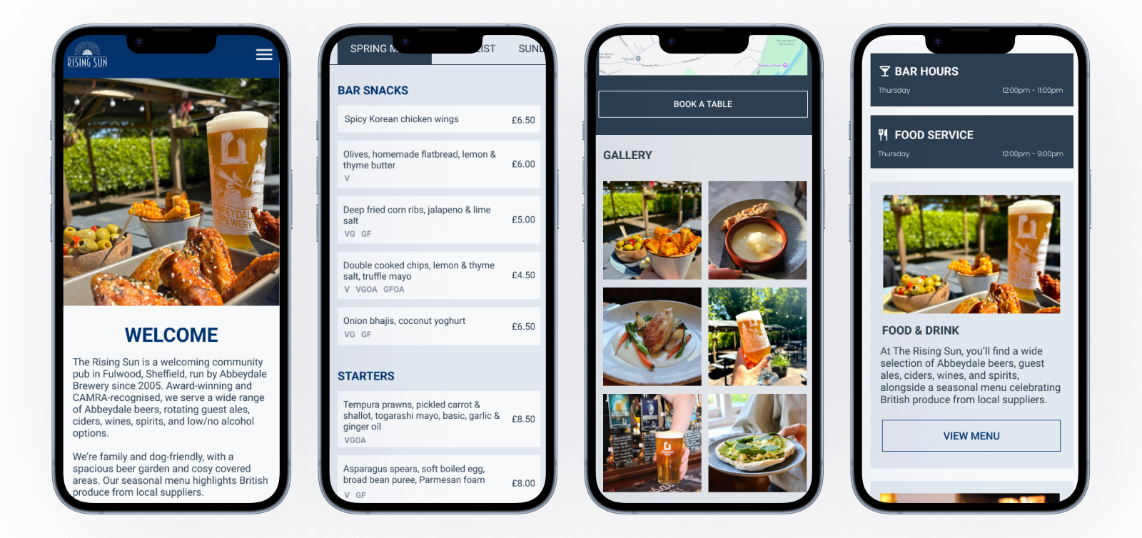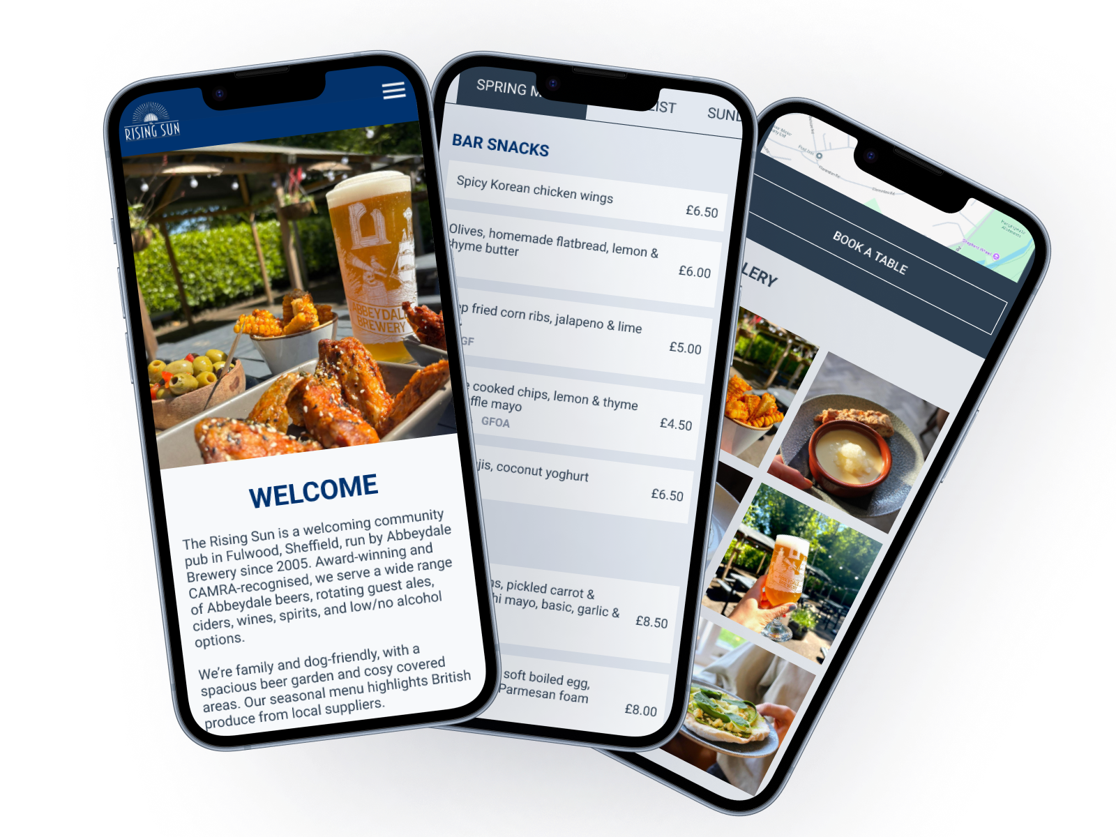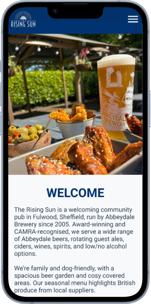 The Rising Sun’s website wasn’t working for their customers — it was outdated, hard to navigate, and didn’t reflect the warmth or vibrancy of the pub. The venue was struggling to promote events online and missed opportunities for table bookings.
